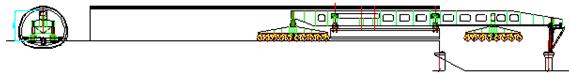 ① 打開主支腿定扭矩馬達,當反饋信息表明馬達工作正常時,啟動后車,以每分鐘不超過2.5米的速度前行過孔。同時觀察主支腿水平力監測顯示是否正常(此時上鋼銷顯示數據大致在80kN左右,對鋼銷受力數值的控制是:上鋼銷150kN報警,170kN斷電;下鋼銷570kN報警,650kN斷電),如發現主支腿水平力數值異常,須檢查故障原因,排除后方可繼續過孔作業。當輔助支腿已上到前方橋墩時,以慢速使輔助支腿就位。